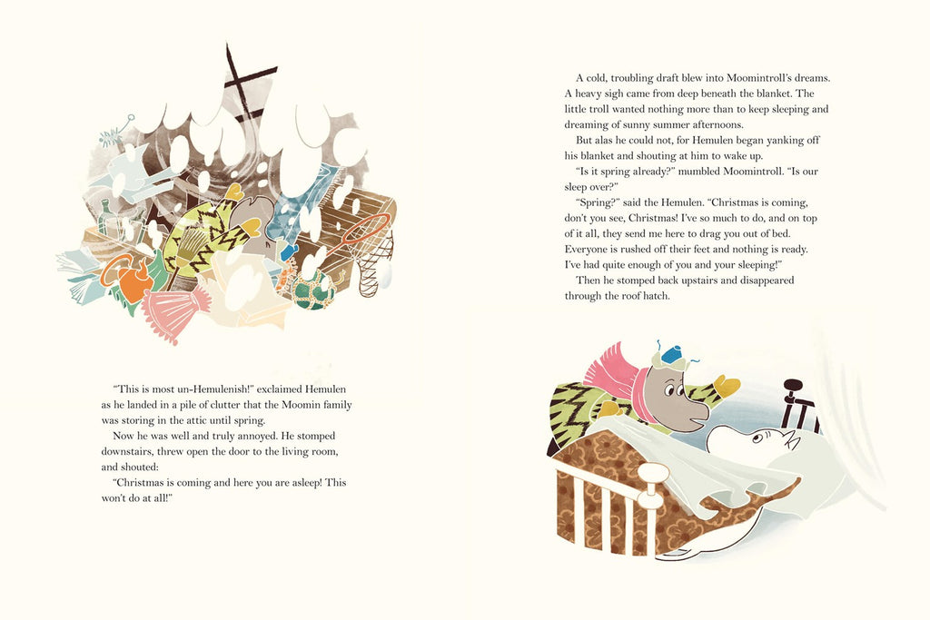 An exquisitely illustrated retelling of Tove Jansson's classic story The Fir Tree, in which the Moomins are awakened from their Long Winter Sleep to be told that Christmas is coming. The only trouble is, the Moomins have no idea who—or what—Christmas is. As the Moomins prepare for Christmas, they learn what Christmas is really about. For Ages 4 and up.