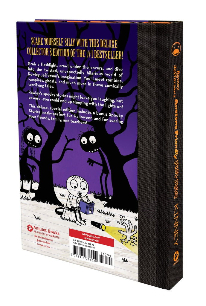 care yourself silly with this deluxe collector’s edition of the #1 bestselling Rowley Jefferson’s Awesome Friendly Spooky Stories by Jeff Kinney—the international bestselling author of the Diary of a Wimpy Kid series—featuring foil finishes, stenciled edges, a bonus punch-out mask, and more!