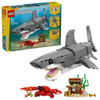 Boys and girls ages 8 and up can play out fun underwater stories with this LEGO® Creator 3 in 1 Fierce Shark with a Treasure Chest (31381) building toy. This impressive sea animal toy set offers kids 3 different building options with the same set of bricks. They can choose to build a posable shark toy that can be displayed on a stand with a treasure chest and crab. They can then rebuild it into an anglerfish on a stand with sea plants or a posable manta ray toy on a stand with a clamshell. Once the building and playtime fun is over, each model can be displayed as room decor on a shelf or desk. This LEGO Creator 3 in 1 set will inspire young imaginations and makes a great gift idea for kids who love sea animals. And with the LEGO Builder app, they can also experience a building adventure. They can zoom in and rotate their sets using 3D building instructions, track their progress and save sets in one place. Please note models cannot be built simultaneously. Set contains 379 pieces. For Ages 8 and up. WARNING: CHOKING HAZARD - Small Parts. Not for children under 3yrs.