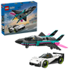 This double-feature LEGO® City Jet vs. Car (60489) vehicle toys playset includes a sleek supercar and a supersonic jet for imaginative racing fun. The toy jet features swept-back wings, twin vertical fins and stabilizers. Kids can slide a lever toengage the jet’s afterburners and open the cockpit of the supercar to access the detailed interior, complete with a racing seat. Just add the pilot and race driver minifigures for hours of epic race action. Make any day special with this jet and car bu ilding kit – a great gift for 6-year-old boys, girls and kids who love race car toys and model aircraft. Add this set to others (sold separately) from the LEGO City range for citywide action. Make this LEGO vehicles sports car and jet plane toy playset even more fun with the LEGO Builder app, where kids can zoom in, rotate models in 3D, and track their building progress. Set contains 259 pieces. For Ages 6 and up. WARNING: CHOKING HAZARD - Small Parts. Not for children under 3yrs.