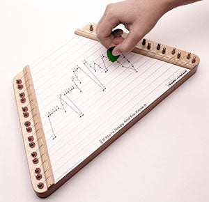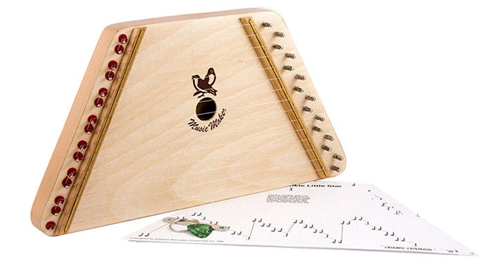 The Music Maker lap harp lets everyone play beautiful music, regardless of prior musical experience, by simply sliding a song sheet beneath the strings and plucking the string above each printed note.