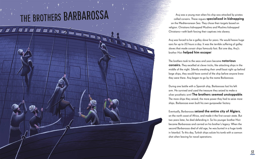 Tales of Pirates includes sagas of famous pirates like Blackbeard, Ching Shih and Francis Drake, as well as stories of buccaneers you might not have heard of, such as Grace O’Malley, who went to sea disguised as a boy and Sayyida al Hurra, a Moroccan queen turned privateer.