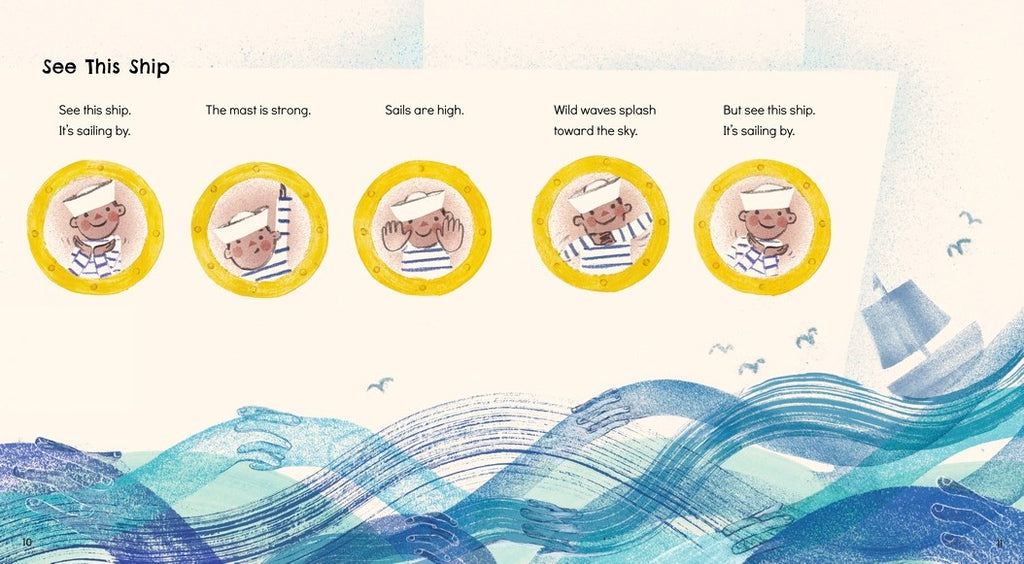 What better way to get little ones excited about poems than to make them part of the delivery? In the hallowed tradition of nursery rhymes and songs like “Itsy Bitsy Spider,” this imaginative collection entices children to use their fingers, hands, and sometimes whole bodies to bring a variety of verses to life. Whether the subject is sailing ships or stomping dinosaurs, falling snow or popping bubbles, jumping onto waterslides or riding a crowded elevator, Sean Taylor’s rhythmic read-aloud verses pair with Fiona Woodcock’s fresh, colorful illustrations, offering clues to the finger actions kids can follow—unless they’re happily acting things out already, using shapes and movements all their own. For Ages 3 and up.