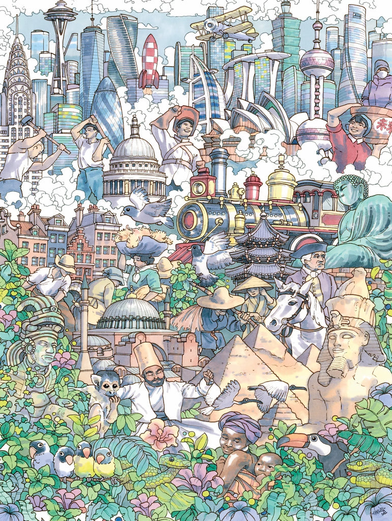 The Passage of Time is a Humanities timeline illustrating the history of our challenges and victories. Whether it’s building the Great Pyramids of Egypt by hand, expanding commerce through rail transport, or further exploration into space, people from around the world continue to work hard for a better life.