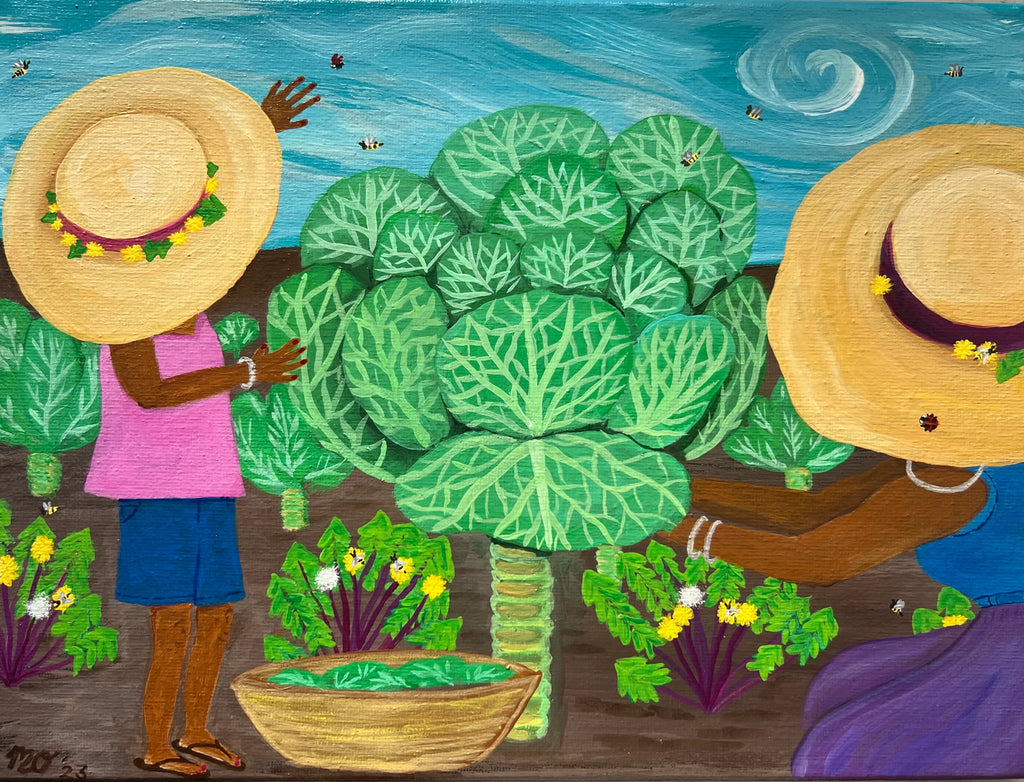 Step into a magical garden with Summertime Collards! This colorful puzzle shows a loving mom and daughter tending to their garden, surrounded by buzzing bees, cute ladybugs, and fluffy dandelions. Inspired by peaceful summer days, the vibrant background sparkles like Van Gogh’s Starry Night and captures the joy of being in nature.