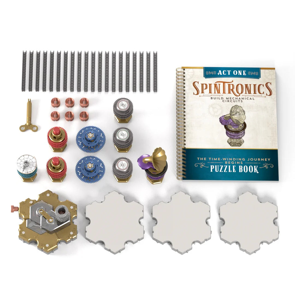 Begin the time-winding journey with Spintronics Act One. Get started building fascinating mechanical circuits as you solve 67 fun, challenging puzzles from beginner to intermediate difficulty.