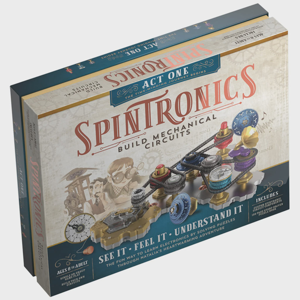 Spintronics is a new game (ages 8 to adult) from the makers of Turing Tumble where players build mechanical circuits to solve puzzles. Players feel the pull of voltage and see the flow of current as they discover electronics in a tangible and deeply intuitive way, using the first physical equivalent of electronics ever built. It’s fun, fascinating, easy-to-learn, and irresistible to play. For Ages 8 and up. WARNING: CHOKING HAZARD - Small Parts. Not for children under 3yrs.