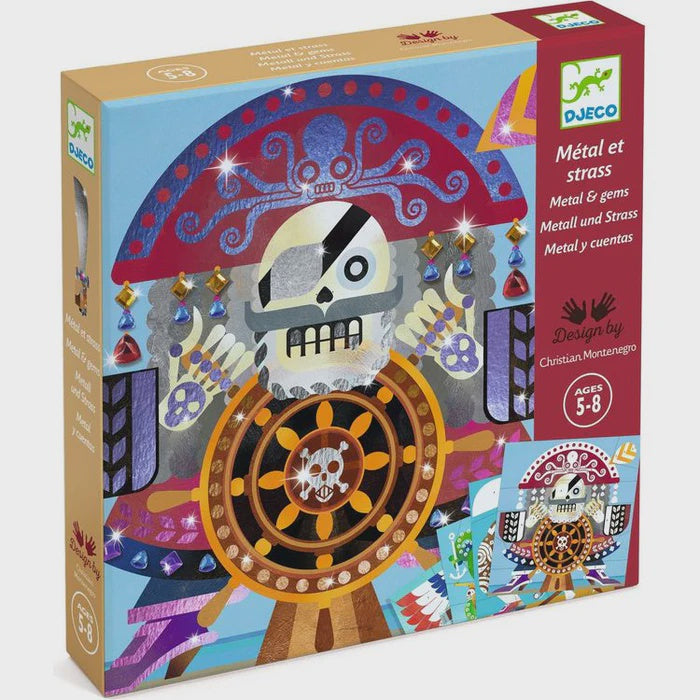 Prepare to board! A collage activity to decorate 4 pirate-themed pictures with foil and rhinestones. Identify where to place the foil using the color code shown on the boards. Using the tool, reveal the film protecting the glued surface and stick down the foil. The material settles like magic! Then, stick on the rhinestones to make the pictures shine. For Ages 5 and up. WARNING: CHOKING HAZARD - Small Parts. Not for children under 3yrs.