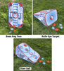 Target toss games appeal to kids and adults of all ages; they're classic fun, easy to learn and play, competitive for every age, and offer convenient set-up in any play space indoors or out. But our 3-in-1 Portable Pop-Up Target Game Set offers not just 1, but 3 ways to play, with each side offering a different game—no need to draw sticks to decide what you're going to play. Using bean bags instead of heavy bulky balls or sharp arrows, our innovative game set includes 3 games: skee-ball, bean bag toss, and a bulls-eye target.