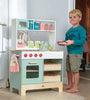 With an oven and integral microwave and plate rack, this kitchen range is made extra special with a multitude of original accessories. 2 wicker baskets provide lots of storage space for other pretend play food within the mini chef range, 2 wooden storage jars, 3 racks of herbs, 3 pretty plates, a printed gingham potholder, a printed mini chef tea towel, and 3 cooking utensils. Pretend play food here is a delightful 2 part fish with garnishes in an oval fish pan. Lastly but not least, don’t forget to wash your hands at the sink with a handy soap dispenser! Assembly required, For Ages 3 and up. WARNING: CHOKING HAZARD - Small Parts. Not for children under 3yrs.