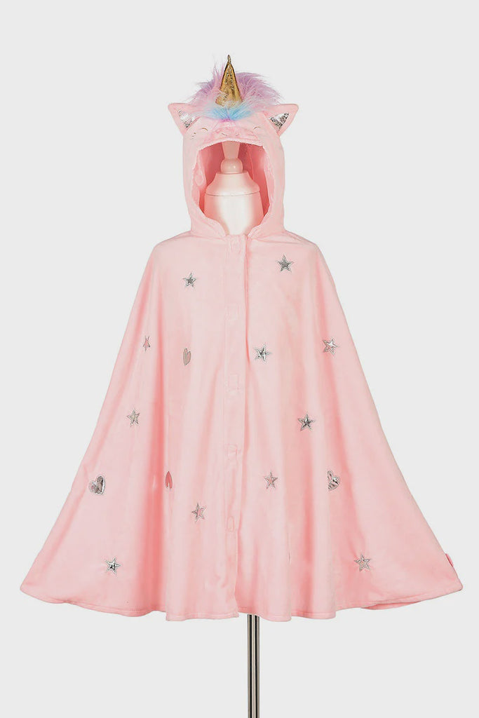 In the quiet dawn of the Enchanted Valley, when the mist still dances on flower petals and moonbeams fade into morning light, the rare pink Unicorn appears, a guardian of dreams and keeper of kindness. It leaves behind only one trace: a glistening cape, woven from clouds, moonlight, and a touch of magic. Transform into a magical creature with this playful Unicorn cape in pink! Perfect for kids aged 4-8, this cape will add a touch of whimsy to any playtime adventure. Size 4-8. WARNING: CHOKING HAZARD - Small Parts. Not for children under 3yrs.