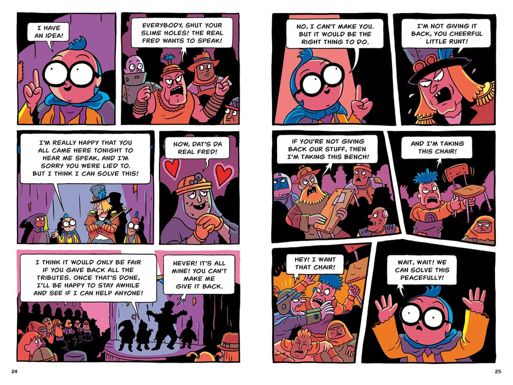 When Fred discovers the Tomorrow Sphere, a secret community that has survived the apocalypse in luxury—blankets! Medicine! Unlimited ice cream!—he's delighted that people in need can soon be helped. But despite all his pleading, the Tomorrow Sphere leader absolutely, definitely, and totally refuses to share.